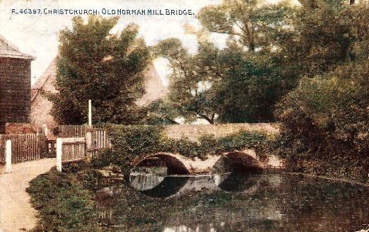 Old Norman Mill Bridge, Christchurch - card posted 1919